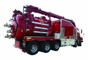 The Terra-Vex all-season hydroexcavator from Transway Systems has a Robuschi RB-DV145 6,400 cfm blower with an OMSI transfer case and insulated acoustical enclosure with walk-in storage. Water pressure is achieved by the hydraulically driven Giant LP600 water pump, delivering 10 gpm at 6,000 psi. The 2,500-gallon debris tank has a hydraulically operated hoist and door locks with a full-open door. The 1,200-gallon HDPE water tank supplies a 420,000 Btu diesel-fired burner, permitting operation in subzero temperatures. The water pump and water tank compartments are heated by one diesel-fired heater and one 12-volt engine-coolant heater. The 26-foot hydraulically operated 8-inch suction boom has joystick control and wireless remote control. All parts are painted/powder-coated off the unit, with a marine-grade plywood floor enclosure, three-camera backup system and digital water level display. 800/263-4508; www.transwaysystems.com.
